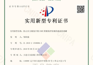 • 防止應力腐蝕開裂ZARE陰極保護防腐的液態烴球罐實用新型專利